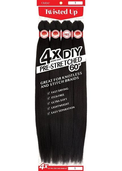Outre X-Pression Twisted Up Long Length Yaki Straight Style Synthetic Hair Pre-Stretched Braid – DIY PRE-STRETCHED BRAID 50 Inch 4X (MN)