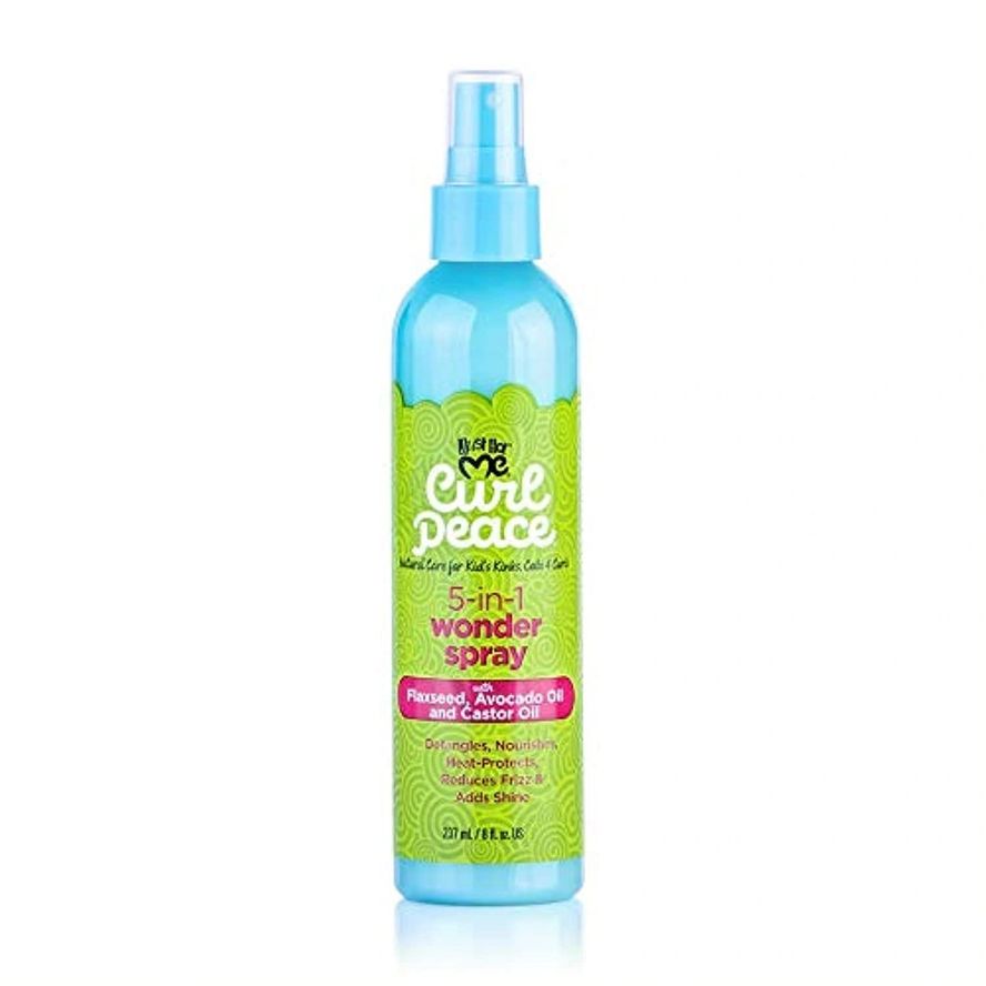 Just For Me Curl Peace 5-In-1 Wonder Spray – Detangles, Nourishes, Heat-Protects, Reduces Frizz, Adds Shine, Contains Flaxseed, Avocado Oil, Castor Oil, No Animal Testing, 8 oz