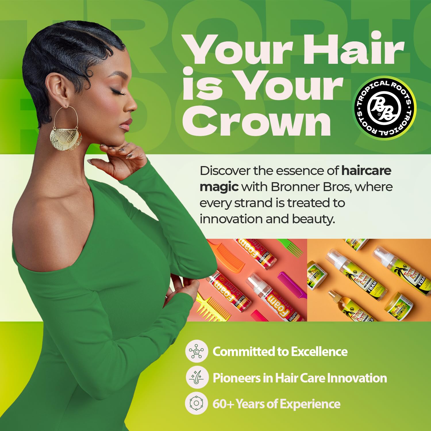 Bronner Bros Tropical Roots Moisturizing Sculpting Foam - With Vitamin E & B5, Guava & Pomegranate Extracts - Hydrating, Nourishing, Long-Lasting Hold & Definition, No Flaking or Build-Up - 8.5oz